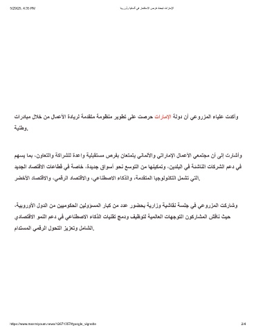 تاردﺎﺑﻣ لﻼﺧ نﻣ لﺎﻣﻋﻷا ةدﺎﯾرﻟ ﺔﻣدﻘﺗﻣ ﺔﻣوظﻧﻣ رﯾوطﺗ ﻰﻠﻋ تﺻرﺣ تارﺎﻣﻹا ﺔﻟود نأ ﻲﻋورزﻣﻟا ءﺎﯾﻠﻋ تدﻛأو