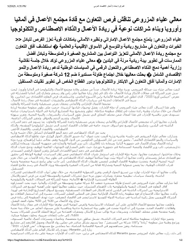 تﺎﻛﺮﺸﻟا ﻢﻋد ﻲﻓ ﻢﮫﺴﻳ ﺎﻤﺑ ،نوﺎﻌﺘﻟاو ﺔﻛاﺮﺸﻠﻟ ةﺪﻋاو ﺔﯿﻠﺒﻘﺘﺴﻣ صﺮﻔﺑ نﺎﻌﺘﻤﺘﻳ ﻲﻧﺎﻤﻟﻷاو ﻲﺗارﺎﻣﻹا لﺎﻤﻋﻷا ﻲﻌﻤﺘﺠﻣ نأ ﻰﻟإ ﺎﮫﯿﻟﺎﻌﻣ ترﺎﺷأو