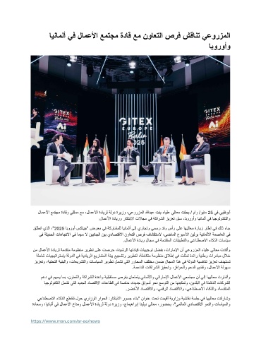 لامعلأا عمتجم ةداقو يلثمم عم ،لامعلأا ةدايرل ةلود ةريزو ،يعورزملا اللهدبع تنب ءايلع يلاعم تثحب / ماو /ويام 25 يف يبظوبأ