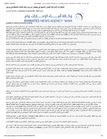 5/29/25, 4:58 PM UAE News - نﯾﻟرﺑﺑ ﻲﻋﺎﻧطﺻﻻا ءﺎﻛذﻟا مﻟﺎﻋو ﺎﺑوروأ سﻛﺗﯾﺟ ﻲﻓ دﮭﺷﻣﻟا ردﺻﺗﺗ ﺔﯾﺗارﺎﻣﻹا تارﺎﻛﺗﺑﻻا - تارﺎﻣﻹا رﺎﺑﺧأ