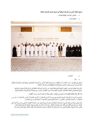 ،ةيلئاعلا تاكرشلل دحوملا اهلجس يف ةينطولا تاكرشلا نم ىلولأا ةعفدلا ليجست نع داصتقلاا ةرازو تنلعأ / ماو / ويام 22 يف يبظوبأ