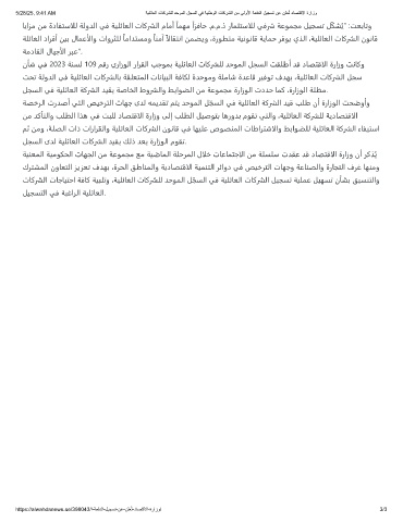 5/28/25, 9:41 AM ﺔﯾﻠﺋﺎﻌﻟا تﺎﻛرﺷﻠﻟ دﺣوﻣﻟا لﺟﺳﻟا ﻲﻓ ﺔﯾﻧطوﻟا تﺎﻛرﺷﻟا نﻣ ﻰﻟوﻷا ﺔﻌﻓدﻟا لﯾﺟﺳﺗ نﻋ نﻠﻌُﺗ دﺎﺻﺗﻗﻻا ةرازو