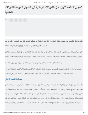 بﺟوﻣﺑ كﻟذو ،ﺔﯾﻠﺋﺎﻌﻟا تﺎﻛرﺷﻠﻟ دﺣوﻣﻟا ﺎﮭﻠﺟﺳ ﻲﻓ ﺔﯾﻧطوﻟا تﺎﻛرﺷﻟا نﻣ ﻰﻟوﻷا ﺔﻌﻓدﻟا لﯾﺟﺳﺗ نﻋ دﺎﺻﺗﻗﻻا ةرازو تﻧﻠﻋأ