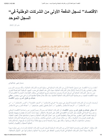 5/28/25, 9:42 AM “رﺎﺑﺧﻸﻟ رﺎﺑﺳﻣ – دﺣوﻣﻟا لﺟﺳﻟا ﻲﻓ ﺔﯾﻧطوﻟا تﺎﻛرﺷﻟا نﻣ ﻰﻟوﻷا ﺔﻌﻓدﻟا لﺟﺳﺗ ”دﺎﺻﺗﻗﻻا