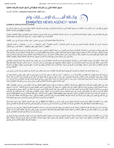 5/28/25, 9:42 AM UAE News - ﺔﯾﻠﺋﺎﻌﻟا تﺎﻛرﺷﻠﻟ دﺣوﻣﻟا لﺟﺳﻟا ﻲﻓ ﺔﯾﻧطوﻟا تﺎﻛرﺷﻟا نﻣ ﻰﻟوﻷا ﺔﻌﻓدﻟا لﯾﺟﺳﺗ - تارﺎﻣﻹا رﺎﺑﺧأ