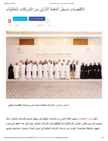 5/28/25, 9:43 AM «ﺔﯾﻠﺋﺎﻌﻟا تﺎﻛرﺷﻟا نﻣ ﻰﻟوﻷا ﺔﻌﻓدﻟا لﺟﺳﺗ «دﺎﺻﺗﻗﻻا
