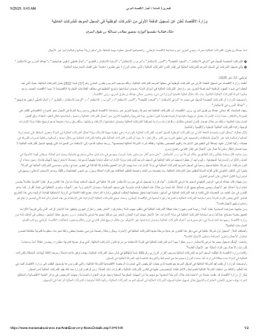 لﺎﯾﺟﻷا رﺑﻋ ﺎﮭﺗارﺎﻣﺛﺗﺳاو ﺎﮭﻟﺎﻣﻋأ ﺔﯾرارﻣﺗﺳا ﻰﻠﻋ ظﺎﻔﺣﻠﻟ ﺔﻣﮭﻣ ةوطﺧ لﺟﺳﻠﻟ ﺎﮭﻣﺎﻣﺿﻧاو ..ﻲﻧطوﻟا دﺎﺻﺗﻗﻻا ﺔﻣادﺗﺳاو وﻣﻧ زﯾزﻌﺗﻟ ﻲﺳﯾﺋر كرﺣﻣ ﺔﯾﻠﺋﺎﻌﻟا تﺎﻛرﺷﻟا :قوط نﺑ ﷲدﺑﻋ <<