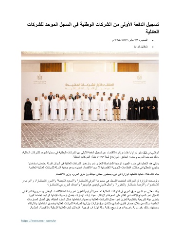،ةيلئاعلا تاكرشلل دحوملا اهلجس يف ةينطولا تاكرشلا نم ىلولأا ةعفدلا ليجست نع داصتقلاا ةرازو تنلعأ / ماو / ويام 22 يف يبظوبأ