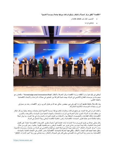 عم نواعتلاب ، “Knowledge and Innovation Hub” راكتبلااو ةفرعملا زكرم داصتقلاا ةرازو تقلطأ / ماو /ويام 22 يف يبظوبأ