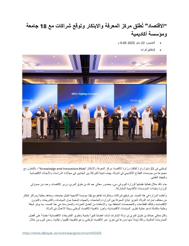 عم نواعتلاب ، “Knowledge and Innovation Hub” راكتبلااو ةفرعملا زكرم داصتقلاا ةرازو تقلطأ / ماو /ويام 22 يف يبظوبأ