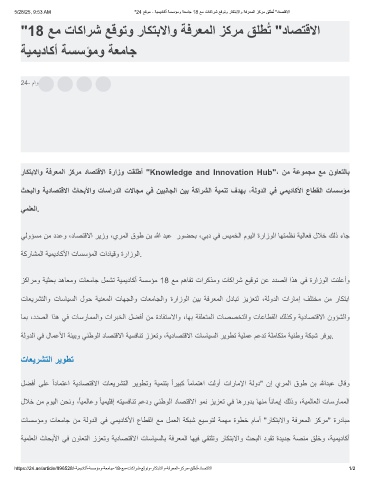 "18 ﻊﻣ تﺎﻛارﺷ ﻊﻗوﺗو رﺎﻛﺗﺑﻻاو ﺔﻓرﻌﻣﻟا زﻛرﻣ ﻖﻠطُﺗ "دﺎﺻﺗﻗﻻا
