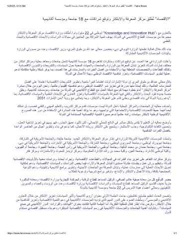 رﺎﻛﺗﺑﻻاو ﺔﻓرﻌﻣﻟا زﻛرﻣ دﺎﺻﺗﻗﻻا ةرازو تﻘﻠطأ / ماو /وﯾﺎﻣ 22 ﻲﻓ ﻲﺑظوﺑأ “Knowledge and Innovation Hub”، ﻊﻣ نوﺎﻌﺗﻟﺎﺑ
