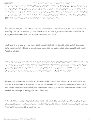 2031 تارﺎﻣﻹا نﺣﻧ“ ﺔﯾؤر ﻊﻣ ﻰﺷﺎﻣﺗﯾ ﺎﻣﺑو ،رﺎﻛﺗﺑﻻاو ﺔﻓرﻌﻣﻟا ﻰﻠﻋ مﺋﺎﻗ ﻲﻧطو يدﺎﺻﺗﻗا”.