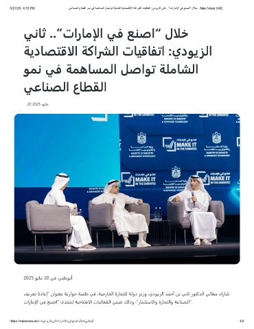 5/27/25, 4:33 PM ﻲﻋﺎﻧﺻﻟا عﺎطﻘﻟا وﻣﻧ ﻲﻓ ﺔﻣھﺎﺳﻣﻟا لﺻاوﺗ ﺔﻠﻣﺎﺷﻟا ﺔﯾدﺎﺻﺗﻗﻻا ﺔﻛارﺷﻟا تﺎﯾﻗﺎﻔﺗا :يدوﯾزﻟا ﻲﻧﺎﺛ .."تارﺎﻣﻹا ﻲﻓ ﻊﻧﺻا" لﻼﺧ - Nas News UAE