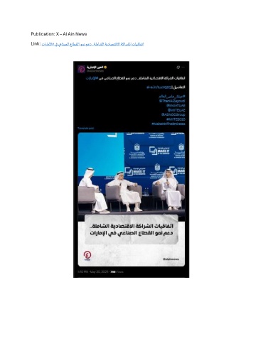 Publication: X – Al Ain News Link: تاراملإا# يف يعانصلا عاطقلا ومن معد ..ةلماشلا ةيداصتقلاا ةكارشلا تايقافتا