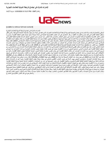 5/27/25, 4:45 PM UAE News - ﺔﯾرﺎﺟﺗﻟا تﺎﻣﻼﻌﻠﻟ ﺔﯾﻟودﻟا ﺔطﺑارﻟا عﺎﻣﺗﺟا ﻲﻓ كرﺎﺷﺗ تارﺎﻣﻹا - تارﺎﻣﻹا رﺎﺑﺧأ