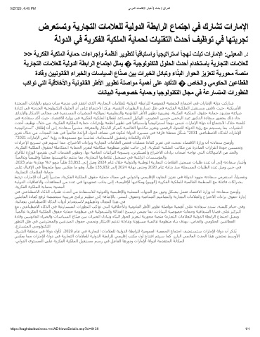 ثﺪﺣأ ﻒﯿظﻮﺗ لﻼﺧ ﻦﻣ ،ﺔﻳﺮﻜﻔﻟا ﺔﯿﻜﻠﻤﻟا ﺔﻳﺎﻤﺣ تاءاﺮﺟإو ﺔﻤﻈﻧأ ﺮﻳﻮﻄﺗ ﻲﻓ ﺎﯿﻗﺎﺒﺘﺳاو ﺎﯿﺠﯿﺗاﺮﺘﺳا ﺎﺠﮫﻧ ﻰﻨﺒﺘﺗ تارﺎﻣﻹا ﺔﻟود نأ عﺎﻤﺘﺟﻻا لﻼﺧ ﻪﺘﻤﻠﻛ