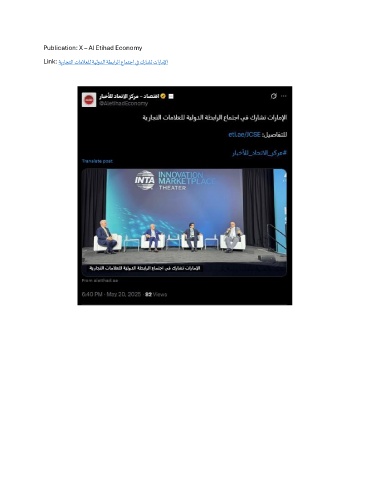 Publication: X – Al Etihad Economy Link: ةيراجتلا تاملاعلل ةيلودلا ةطبارلا عامتجا يف كراشت تاراملإا