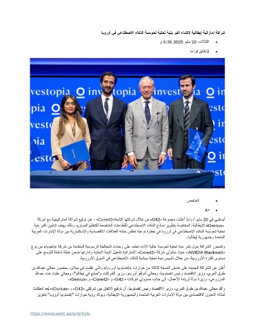 ةكرش عم ةيجيتارتسا ةكارش عيقوت نع ، «Core42» ةعباتلا اهتكرش للاخ نم «G42» ةعومجم تنلعأ /ماو / ويام 20 يف يبظوبأ