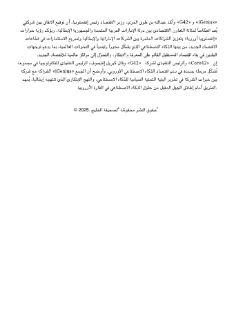 ﺘﻛﺮﺷ ﻦﻴﺑ قﺎﻔﺗﻻا ﻊﻴﻗﻮﺗ نأ ،ﺎﻴﺑﻮﺘﺴﻔﻧإ ﺲﻴﺋر دﺎﺼﺘﻗﻻا ﺮﻳزو ،يﺮﻤﻟا قﻮﻃ ﻦﺑ ﻪﻟاﺪﺒﻋ ﺪﻛأو «G42» و «iGenius»