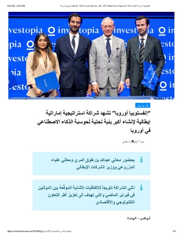 5/27/25, 4:04 PM "ﺎﺑوروأ ﻲﻓ ﻲﻋﺎﻧطﺻﻻا ءﺎﻛذﻟا ﺔﺑﺳوﺣﻟ ﺔﯾﺗﺣﺗ ﺔﯾﻧﺑ رﺑﻛأ ءﺎﺷﻧﻹ ﺔﯾﻟﺎطﯾإ ﺔﯾﺗارﺎﻣإ ﺔﯾﺟﯾﺗارﺗﺳا ﺔﻛارﺷ دﮭﺷﺗ "ﺎﺑوروأ ﺎﯾﺑوﺗﺳﻔﻧإ