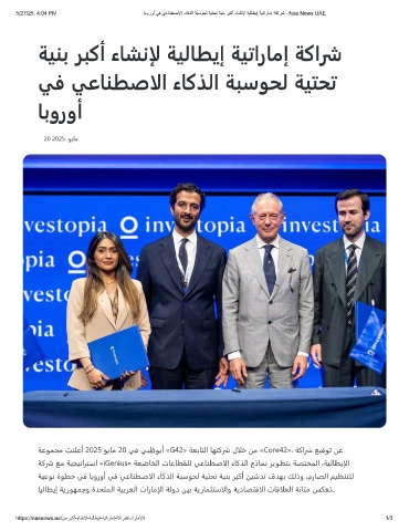 5/27/25, 4:04 PM ﺎﺑوروأ ﻲﻓ ﻲﻋﺎﻧطﺻﻻا ءﺎﻛذﻟا ﺔﺑﺳوﺣﻟ ﺔﯾﺗﺣﺗ ﺔﯾﻧﺑ رﺑﻛأ ءﺎﺷﻧﻹ ﺔﯾﻟﺎطﯾإ ﺔﯾﺗارﺎﻣإ ﺔﻛارﺷ - Nas News UAE
