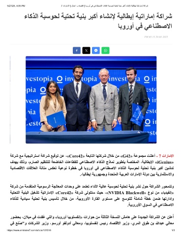 5/27/25, 4:05 PM 7 تارﺎﻣﻻا | لﺎﻣﻋا و دﺎﺻﺗﻗا | ﺎﺑوروأ ﻲﻓ ﻲﻋﺎﻧطﺻﻻا ءﺎﻛذﻟا ﺔﺑﺳوﺣﻟ ﺔﯾﺗﺣﺗ ﺔﯾﻧﺑ رﺑﻛأ ءﺎﺷﻧﻹ ﺔﯾﻟﺎطﯾإ ﺔﯾﺗارﺎﻣإ ﺔﻛارﺷ