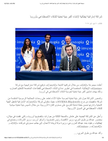 ﺔﯿﻨﺒﻟا ﻞﯿﻐﺸﺗ ﺔﯿﺗارﺎﻣﻹا «Core42» ﺔﻛﺮﺷ ﻰﻟﻮﺘﺘﺳ ﺚﯿﺣ ،«NVIDIA Blackwell» عﻮﻧ ﻦﻣ «ﺎﯾﺪﯿﻔﻧإ» ﺔﻛﺮﺷ