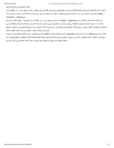سﯾﺋر دﺎﺻﺗﻗﻻا رﯾزو ،يرﻣﻟا قوط نﺑ ﷲدﺑﻋ روﺿﺣﺑ ،نﻼﯾﻣ ﻲﻓ تدﻘُﻋ ﻲﺗﻟاو «ﺎﺑوروأ ﺎﯾﺑوﺗﺳﻔﻧإ» تاراوﺣ نﻣ ﺔﺛﻟﺎﺛﻟا ﺔﺧﺳﻧﻟا» شﻣﺎھ ﻰﻠﻋ ةدﯾدﺟﻟا ﺔﻛارﺷﻟا نﻋ نﻠﻋ ُ أو