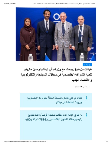 5/26/25, 2:52 PM دﯾدﺟﻟا دﺎﺻﺗﻗﻻاو ﺎﯾﺟوﻟوﻧﻛﺗﻟاو ﺔﺣﺎﯾﺳﻟا تﻻﺎﺟﻣ ﻲﻓ ﺔﯾدﺎﺻﺗﻗﻻا ﺔﻛارﺷﻟا ﺔﯾﻣﻧﺗ وﻧﯾرﺎﻣ نﺎﺳو ﺎﯾﻟﺎطﯾإ ﻲﻓ ءارزو ﻊﻣ ثﺣﺑﯾ قوط نﺑ ﷲدﺑﻋ