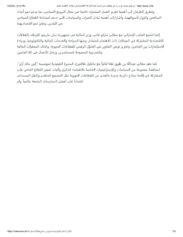 5/26/25, 2:53 PM دﯾدﺟﻟا دﺎﺻﺗﻗﻻا تﻻﺎﺟﻣ ﻲﻓ ﺔﯾدﺎﺻﺗﻗﻻا ﺔﻛارﺷﻟا ﺔﯾﻣﻧﺗ وﻧﯾرﺎﻣ نﺎﺳو ﺎﯾﻟﺎطﯾإ ﻲﻓ ءارزو ﻊﻣ ثﺣﺑﯾ قوط نﺑا - Nas News UAE