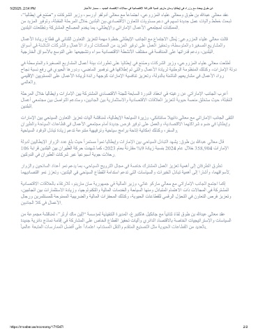 ﺔﻠﺣﺮﻤﻟا لﻼﺧ ﺎﯿﻟﺎﻄﯾإو تارﺎﻣﻹا ﻦﯿﺑ ﺔﻛﺮﺘﺸﻤﻟا يدﺎﺼﺘﻗﻻا ﺔﻨﺠﻠﻟ ﺔﻌﺑﺎﺴﻟا ةروﺪﻟا دﺎﻘﻌﻧا ﻲﻓ ﮫﺘﺒﻏر ﻦﻋ ﻲﺗارﺎﻣﻹا ﺐﻧﺎﺠﻟا بﺮﻋأ