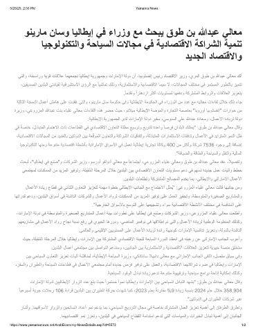 نﯾﺑ ﻲﺣﺎﯾﺳﻟا نوﺎﻌﺗﻟا زﯾزﻌﺗ تﺎﯾﻟآ ﺔﺷﻗﺎﻧﻣﻟ ،ﺔﯾﻟﺎطﯾﻹا ﺔﺣﺎﯾﺳﻟا ةرﯾزو ،ﻲﻛﻧﺎﺗﻧﺎﺳ ﻼﯾﯾﻧاد ﻲﻟﺎﻌﻣ ﻊﻣ ﻲﺗارﺎﻣﻹا بﻧﺎﺟﻟا ﻰﻘﺗﻟا ،لﺻﺗﻣ قﺎﯾﺳ ﻲﻓو