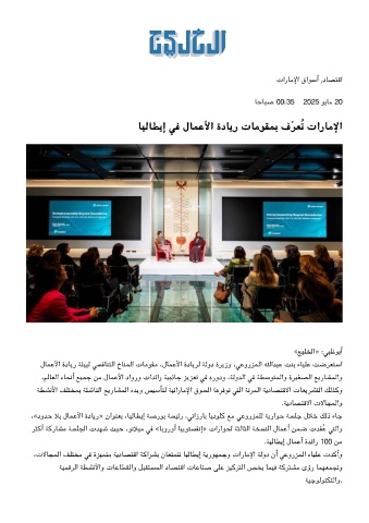،تﻻﺎﺠﻤﻟا ﻒﻠﺘﺨﻣ ﻓ ةﺰﻴﻤﺘﻣ ﺔﻳدﺎﺼﺘﻗا ﺔﻛاﺮﺸﺑ نﺎﻌﺘﻤﺘﺗ ﺎﻴﻟﺎﻄﻳإ ﺔﻳرﻮﻬﻤﺟو تارﺎﻣﻹا ﺔﻟود نأ ﻋورﺰﻤﻟا ءﺎﻴﻠﻋ تﺪﻛأو