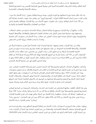 ﻦﻴﻜﻤﺗ ﺔﻴﻤﻫأو ،ﺎﻴﻟﺎﻄﻳإو تارﺎﻣإلا ﺔﻟود ﻲﻓ لﺎﻤﻋألا ﺪﻬﺸﻣ تارﻮﻄﺗ ﻰﻠﻋ تﺰﻛرو ،ﺔﻴﻟﺎﻄﻳإ لﺎﻤﻋأ ةﺪﺋار 100 ﻦﻣ