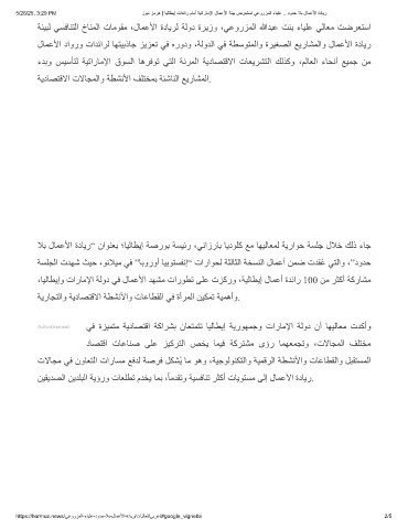 ﻼﺑ لﺎﻤﻋﻷا ةدﺎﯾر“ ناﻮﻨﻌﺑ ؛ﺎﯿﻟﺎﻄﯾإ ﺔﺻرﻮﺑ ﺔﺴﯿﺋر ،ﻲﻧازرﺎﺑ ﺎﯾدﻮﻠﻛ ﻊﻣ ﺎﮭﯿﻟﺎﻌﻤﻟ ﺔﯾراﻮﺣ ﺔﺴﻠﺟ لﻼﺧ ﻚﻟذ ءﺎﺟ
