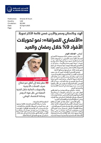 Publication: Emarat Al Youm Country: UAE Circulation: 80,000 Date: 02 April 2025 Page: 8