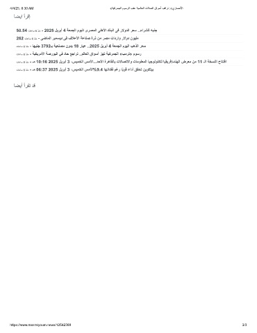 50.54 تﺎﻋﺎﺳ 6 ذﻧﻣ - 2025 لﯾرﺑأ 4 ﺔﻌﻣﺟﻟا موﯾﻟا ىرﺻﻣﻟا ﻰﻠھﻷا كﻧﺑﻟا ﻰﻓ رﻻودﻟا رﻌﺳ ..ءارﺷﻠﻟ ﮫﯾﻧﺟ