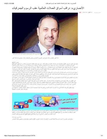 اﺬھ يﻮﺘﺤﻣ نﺎﺑ ﺎﻤﻠﻋ ﻢﻜﻄﯿﺤﻧو ةﺮﯾﺰﺠﻟا نﻮﯿﻋ ﻲﻓ ﺔﯿﻛﺮﻤﺠﻟا مﻮﺳﺮﻟا ﺐﻘﻋ ﺔﯿﻤﻟﺎﻌﻟا تﻼﻤﻌﻟا قاﻮﺳأ ﺐﻗاﺮﻧ :«يرﺎﺼﻧﻷا» ﺮﺒﺧ ةءاﺮﻗ ﺎﻨﯿﻌﺑﺎﺘﻤﻟ اﺮﻜﺷ