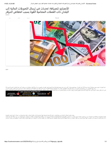 4/4/25, 8:29 AM رﻻودﻟا ضﺎﻔﺧﻧا بﺑﺳﺑ ةوﻘﻟا ﺔﯾﻣﺎﻧﺗﻣﻟا تﻼﻣﻌﻟا تاذ نادﻠﺑﻟا ﻰﻟإ ﺔﯾﻟﺎﻣﻟا تﻼﯾوﺣﺗﻟا لﺎﺳرإ ﻲﻓ تﺎﯾدﺣﺗ :ﺔﻓارﺻﻠﻟ يرﺎﺻﻧﻷا - Business News