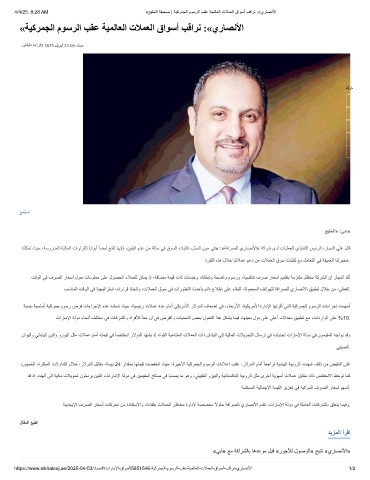 4/4/25, 8:28 AM «ﺞﯾﻠﺧﻟا ﺔﻔﯾﺣﺻ | ﺔﯾﻛرﻣﺟﻟا موﺳرﻟا بﻘﻋ ﺔﯾﻣﻟﺎﻌﻟا تﻼﻣﻌﻟا قاوﺳأ بﻗارﻧ :«يرﺎﺻﻧﻷا