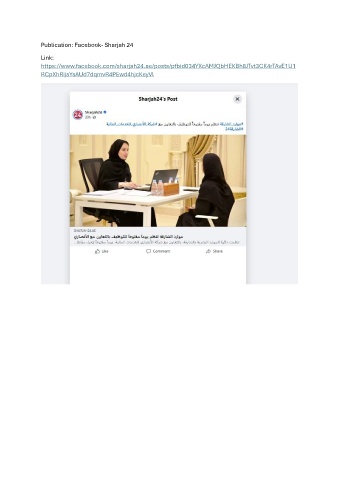 Publication: Facebook- Sharjah 24 Link: https://www.facebook.com/sharjah24.ae/posts/pfbid034YXcAMJQbHEKBh8JTvt3CK4rTAvE1U1 RCpXhRijsYsAUd7dqmvR4PEwd4hjcKeyVl