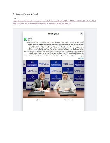 Publication: Facebook- Mataf Link: https://www.facebook.com/permalink.php?story_fbid=pfbid02VooUA17qo4hDRXs2GeDxFea7Ss8 WqTPSoyBqcZQTFeice6tsqhaRs5jYg4vCE2cVl&id=100069557864168