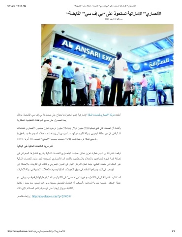 ﻚﻟذو ،ﺔﻀﺑﺎﻘﻟا ﻲﺳ فإ ﻲﺑ ﺔﻋﻮﻤﺠﻣ ﻰﻠﻋ حﺎﺠﻨﺑ ﺎھذاﻮﺤﺘﺳا مﺎﻤﺗإ ﺔﯿﺗارﺎﻣﻹا ﺔﯿﻟﺎﻤﻟا تﺎﻣﺪﺨﻠﻟ يرﺎﺼﻧﻷا ﺔﻛﺮﺷ ﺖﻨﻠﻋأ