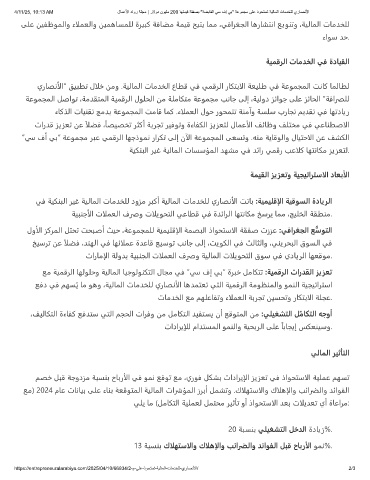 ﻲﻓ ﺔﻴﻜﻨﺒﻟا ﺮﻴﻏ ﺔﻴﻟﺎﻤﻟا تﺎﻣﺪﺨﻠﻟ دوﺰﻣ ﺮﺒﻛأ ﺔﻴﻟﺎﻤﻟا تﺎﻣﺪﺨﻠﻟ يرﺎﺼﻧألا ﺖﺗﺎﺑ :ﺔﻴﻤﻴﻠﻗإلا ﺔﻴﻗﻮﺴﻟا ةدﺎﻳﺮﻟا