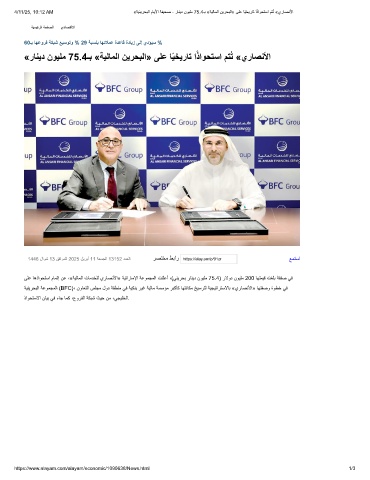 4/11/25, 10:12 AM «ﺔﯾﻧﯾرﺣﺑﻟا مﺎﯾﻷا ﺔﻔﯾﺣﺻ - رﺎﻧﯾد نوﯾﻠﻣ 75.4ـﺑ «ﺔﯾﻟﺎﻣﻟا نﯾرﺣﺑﻟا» ﻰﻠﻋ ﺎًﯾﺧﯾرﺎﺗ ا ً ذاوﺣﺗﺳا مﺗُﺗ «يرﺎﺻﻧﻷا