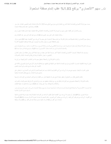 ذاوﺣﺗﺳا ﺔﻘﻔﺻ مﺎﻣﺗإ بﻘﻋ %1.03 ﻊﻔﺗرﯾ "يرﺎﺻﻧﻷا" مﮭﺳ ..تا
