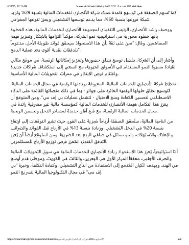 ﺪﻳﺰﺗو %29 ﺔﺒﺴﻨﺑ ﺔﻴﻟﺎﻤﻟا تﺎﻣﺪﺨﻠﻟ يرﺎﺼﻧألا ﺔﻛرش ءالﻤﻋ ةﺪﻋﺎﻗ ﻊﻴﺳﻮﺗ ﻲﻓ ﺔﻘﻔﺼﻟا ﻢﻬﺴﺗ ﺎﻤﻛ