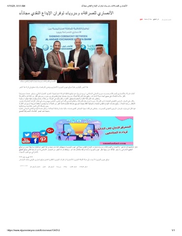 ﺔﯿﻓﺮﺼﻣ تﺎﻣﺪﺧ ﺮﯿﻓﻮﺗو ،ﻲﻟﺎﻤﻟا لﻮﻤﺸﻟا ﺰﯾﺰﻌﺘﻟ ،ﺔﯿﺠﯿﺗاﺮﺘﺳا ﺔﻛاﺮﺷ ﺔﯿﻗﺎﻔﺗا ﻊﯿﻗﻮﺗ ﻦﻋ (ﺎﯾور) «م.م.ذ ﻲﻣﻼﺳﻹا ﻲﻠﺤﻤﻟا ﺎﯾور» فﺮﺼﻣو «ﺔﻓاﺮﺼﻠﻟ يرﺎﺼﻧﻷا» ﺔﻛﺮﺷ ﺖﻨﻠﻋأ