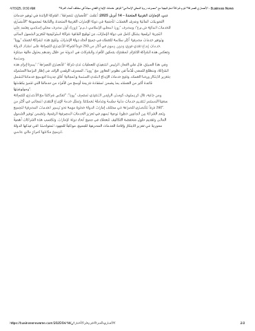 تﺎﻣﺪﺧ ﺮﻴﻓﻮﺗ ﻲﻓ ةﺪﺋاﺮﻟا ﺔﻛرشﻟا ،”ﺔﻓارصﻠﻟ يرﺎﺼﻧألا“ ﺖﻨﻠﻋأ :2025 ﻞﻳﺮﺑأ 14 – ةﺪﺤﺘﻤﻟا ﺔﻴﺑﺮﻌﻟا تارﺎﻣإلا ،ﻲﺑد